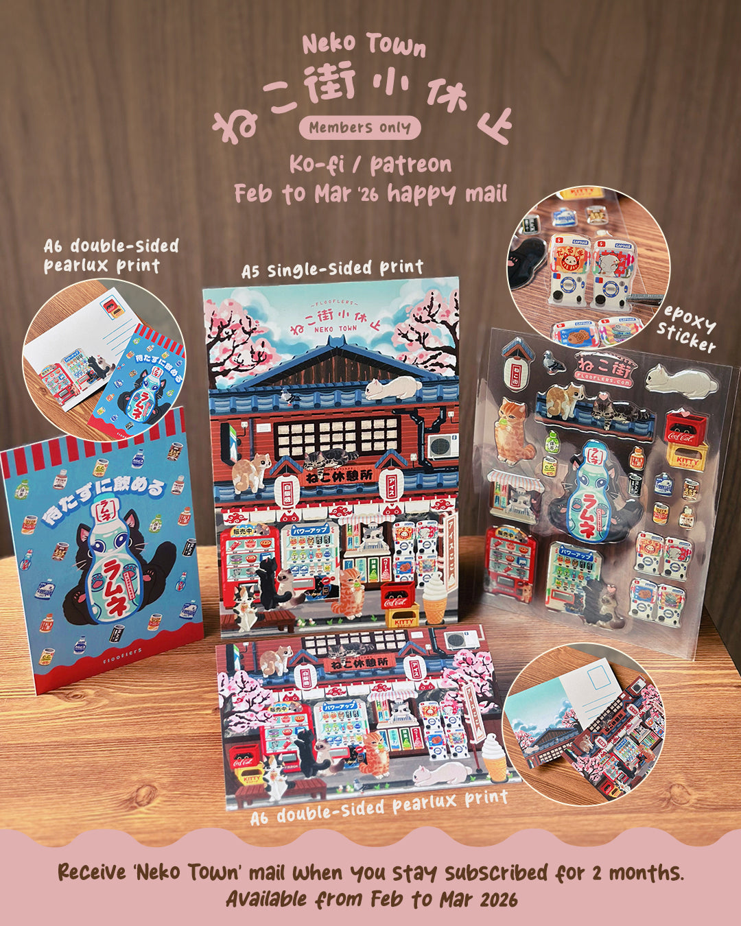 Join and stay subscribed on either Ko-fi or Patreon for two months to receive mail!