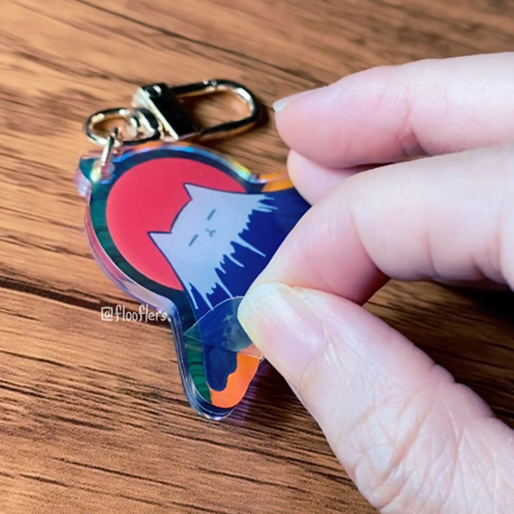 The Great Meow Fuji rainbow acrylic charm fills the edge with epoxy coating on one side giving it a 3 dimensional look.