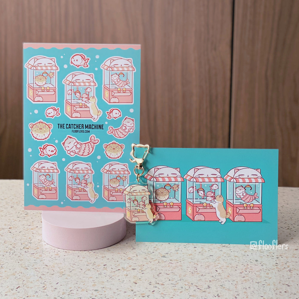1 double-sided print, 1 sticker sheet, 1 acrylic charm
