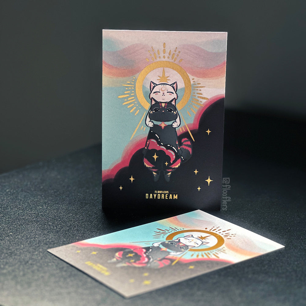 Golden-stamped artwork that harmonizes day & night, taking flight into a surreal daydream.