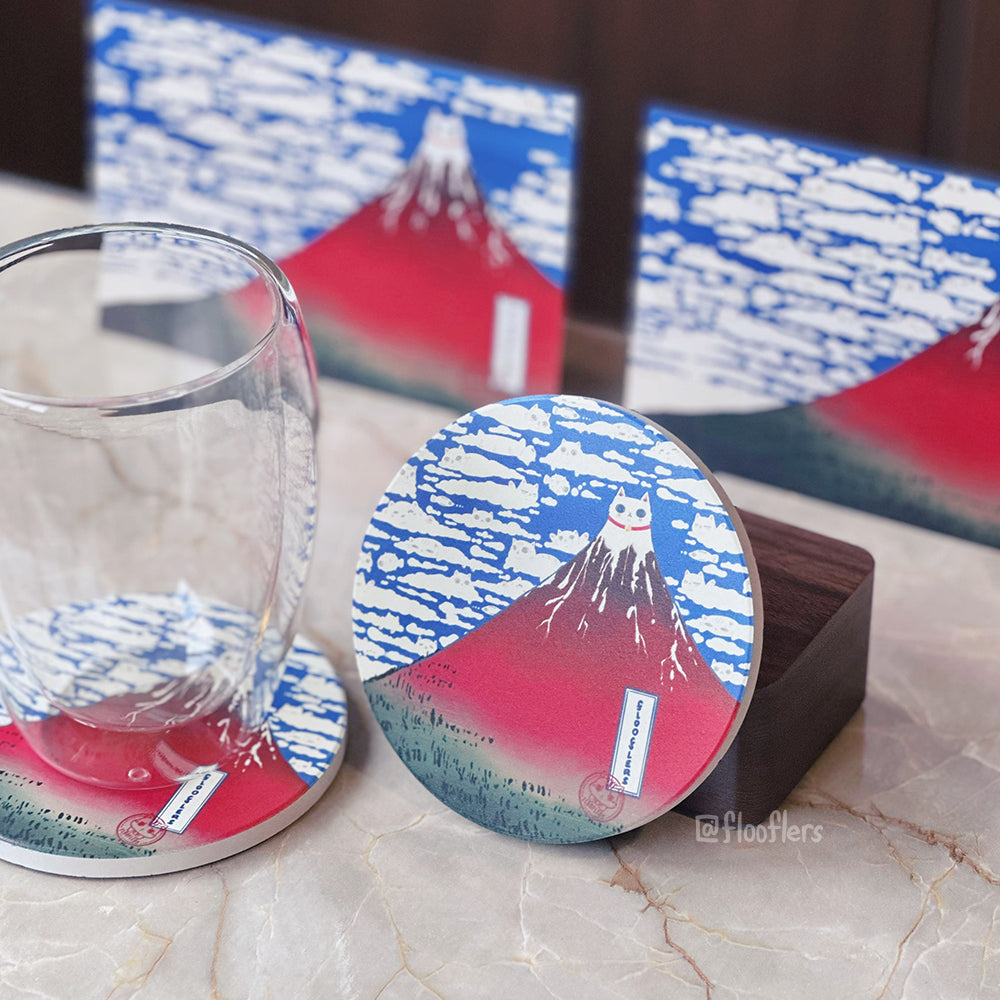 The floofy rendition of Hokusai's 'Fine Wind, Clear Morning'. Cork backing prevents juicy melon from moisture accumulation.
