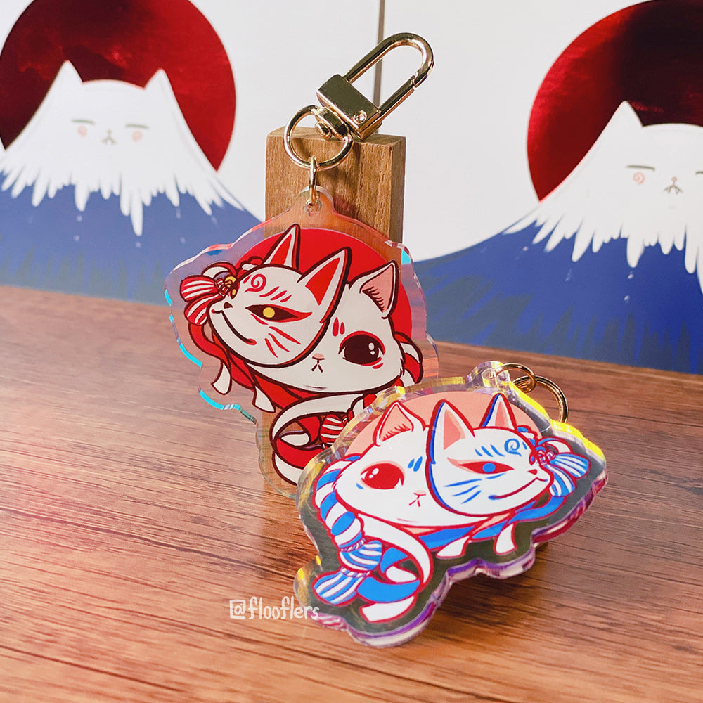 Duo colour holographic arcylic featuring the kitsune mask, commonly worn at Japanese festivals.