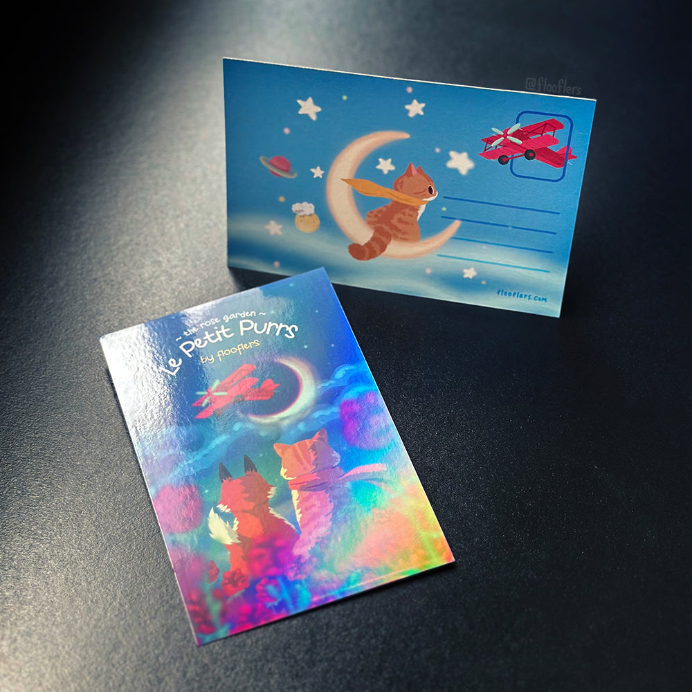 Double-sided print on 300gsm with holo effect on front side