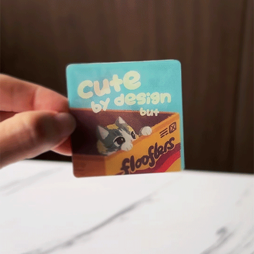 Lenticular prints flip between images when you tilt them like a tiny magic trick in your hands. Ready to stick wherever you like with built-in adhesive.